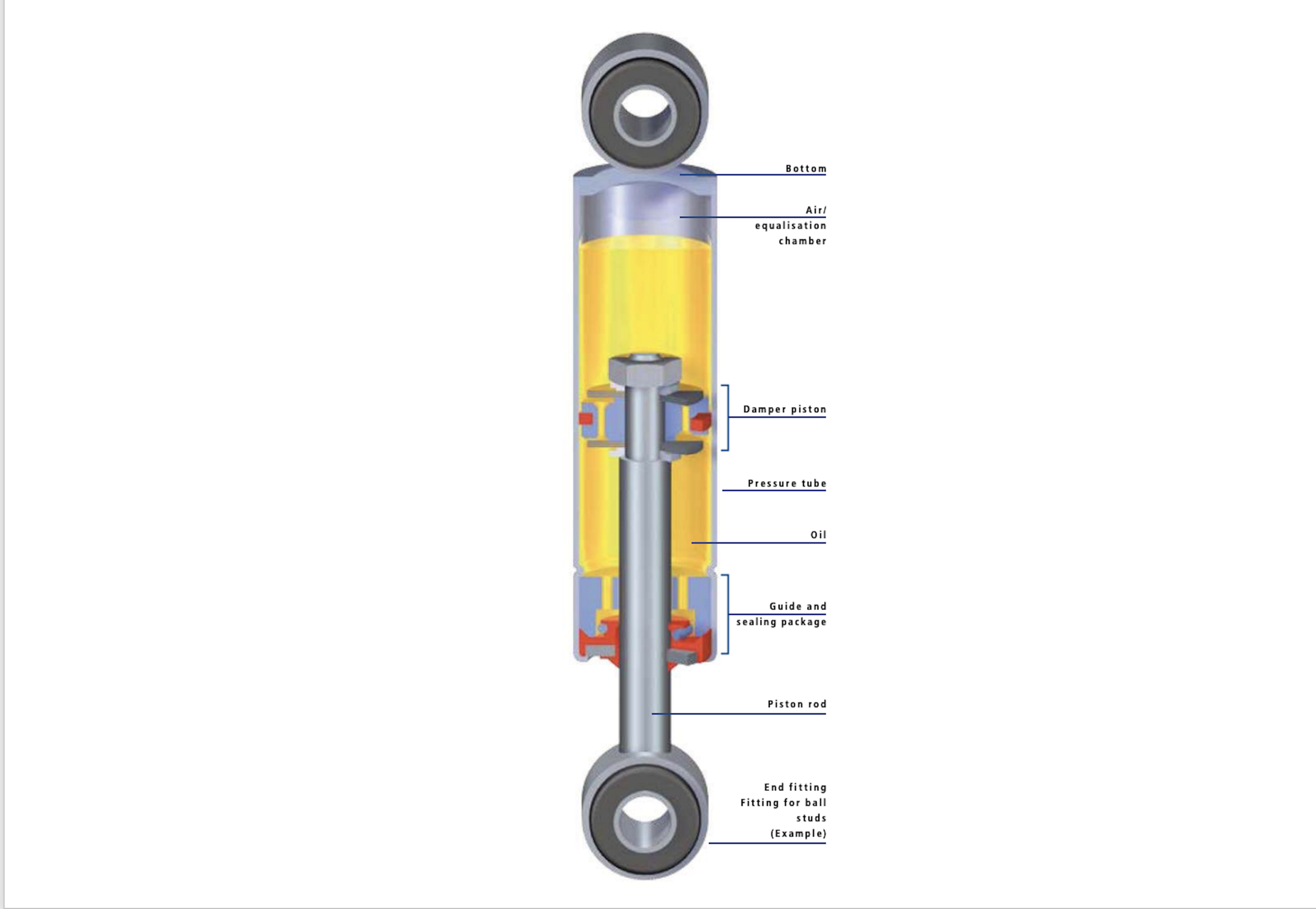 دمپرهای روغنی شامل چندین بخش کلیدی مانند پیستون، میله پیستون، محفظه روغن و سوپاپهای تنظیم جریان روغن هستند که با هماهنگی دقیق، وظیفه جذب و کاهش ضربات را بر عهده دارند.